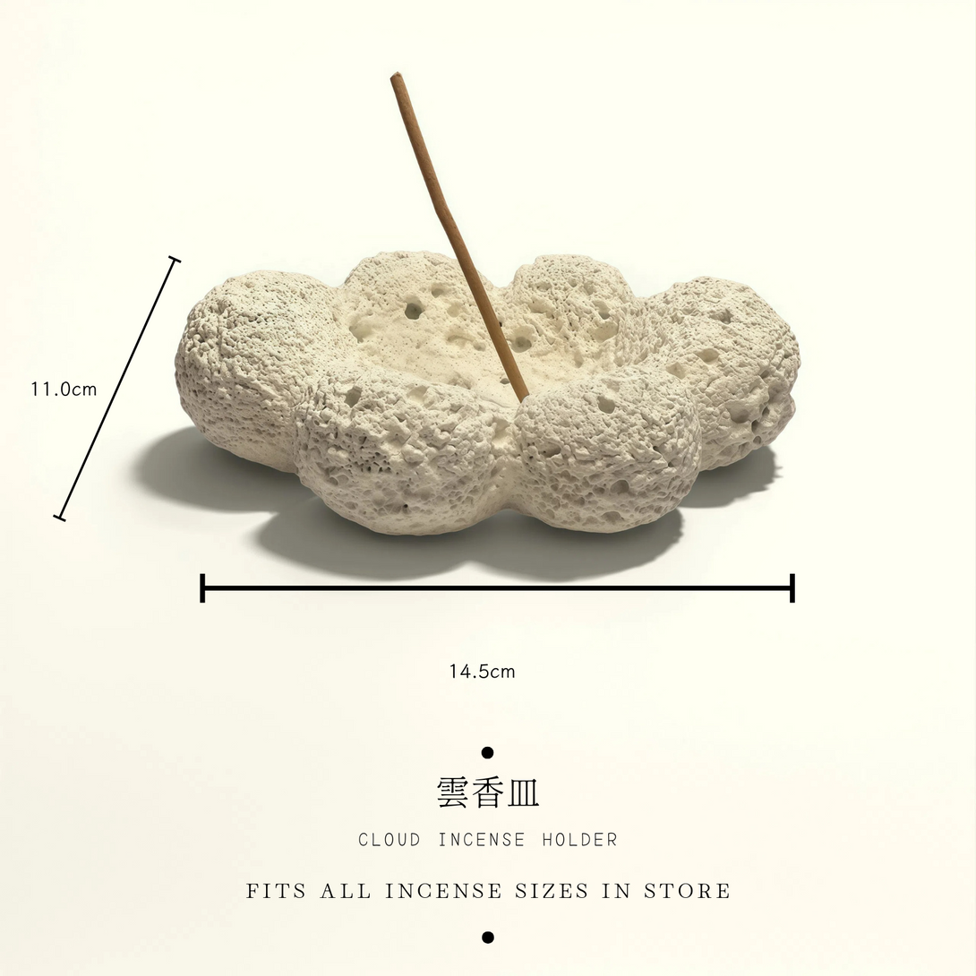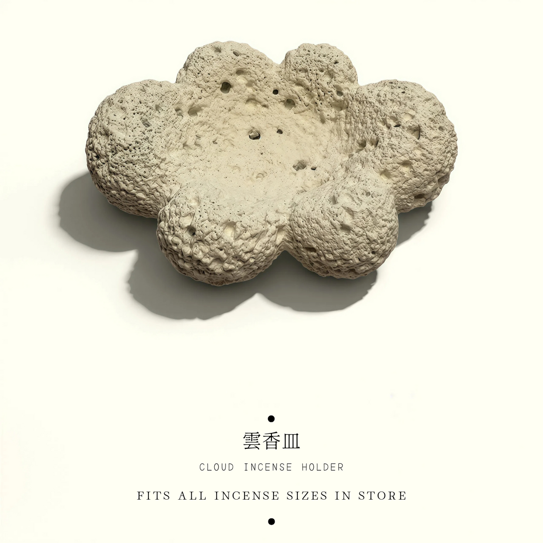 Soft and sculptural, this cloud-shaped holder brings a calm, airy note to your ritual. Its precision-made holes keep the silhouette minimal while offering flexible placement, so the smoke drifts like mist across the sky.